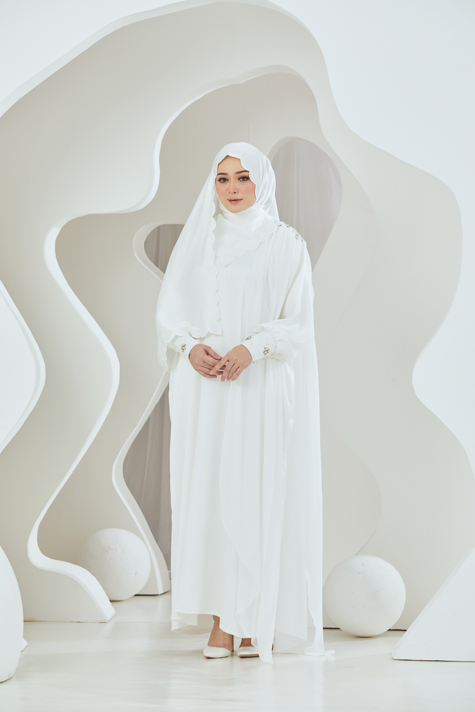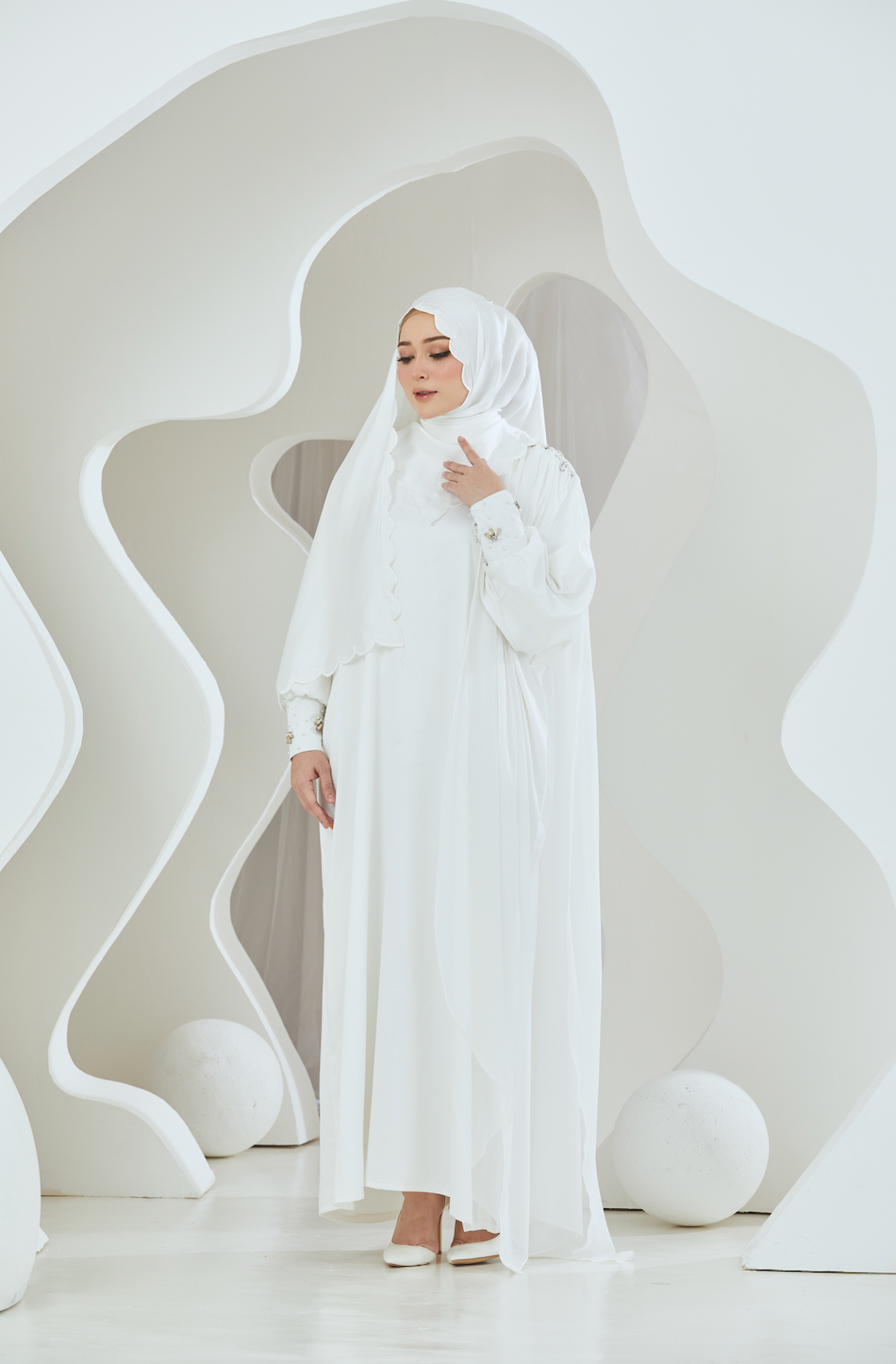 This Duchess Satin Abaya redefines luxury and elegance with its embellished sleeves and a delicate Chiffon Shoulder Sash. Crafted from sumptuous Duchess Satin, the abaya boasts a sleek and lustrous finish, offering an unparalleled touch of sophistication. The sleeves are meticulously adorned with intricate embellishments, adding a sparkle that catches the eye and enhances the garment's luxury appeal. A chiffon shoulder sash drapes elegantly, adding a fluid contrast to the satin's opulence and providing a graceful silhouette. Perfect for formal events, this abaya merges traditional modesty with contemporary elegance, making a statement in refined style.