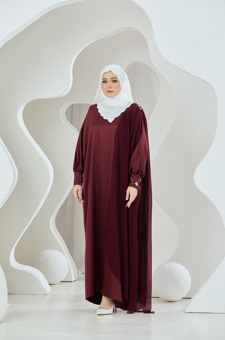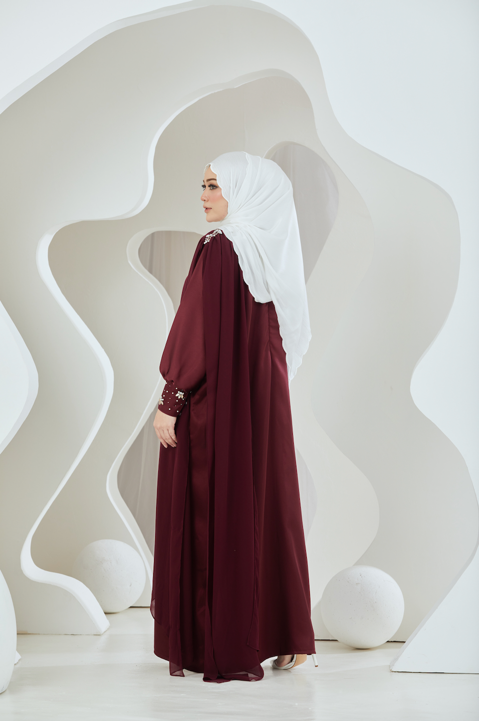Embellished Duchess Satin Abaya - Oxblood